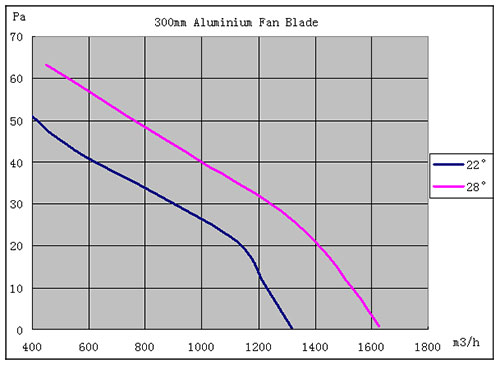 ECQ电机空气性能曲线测量在恒定速度1300rpm。